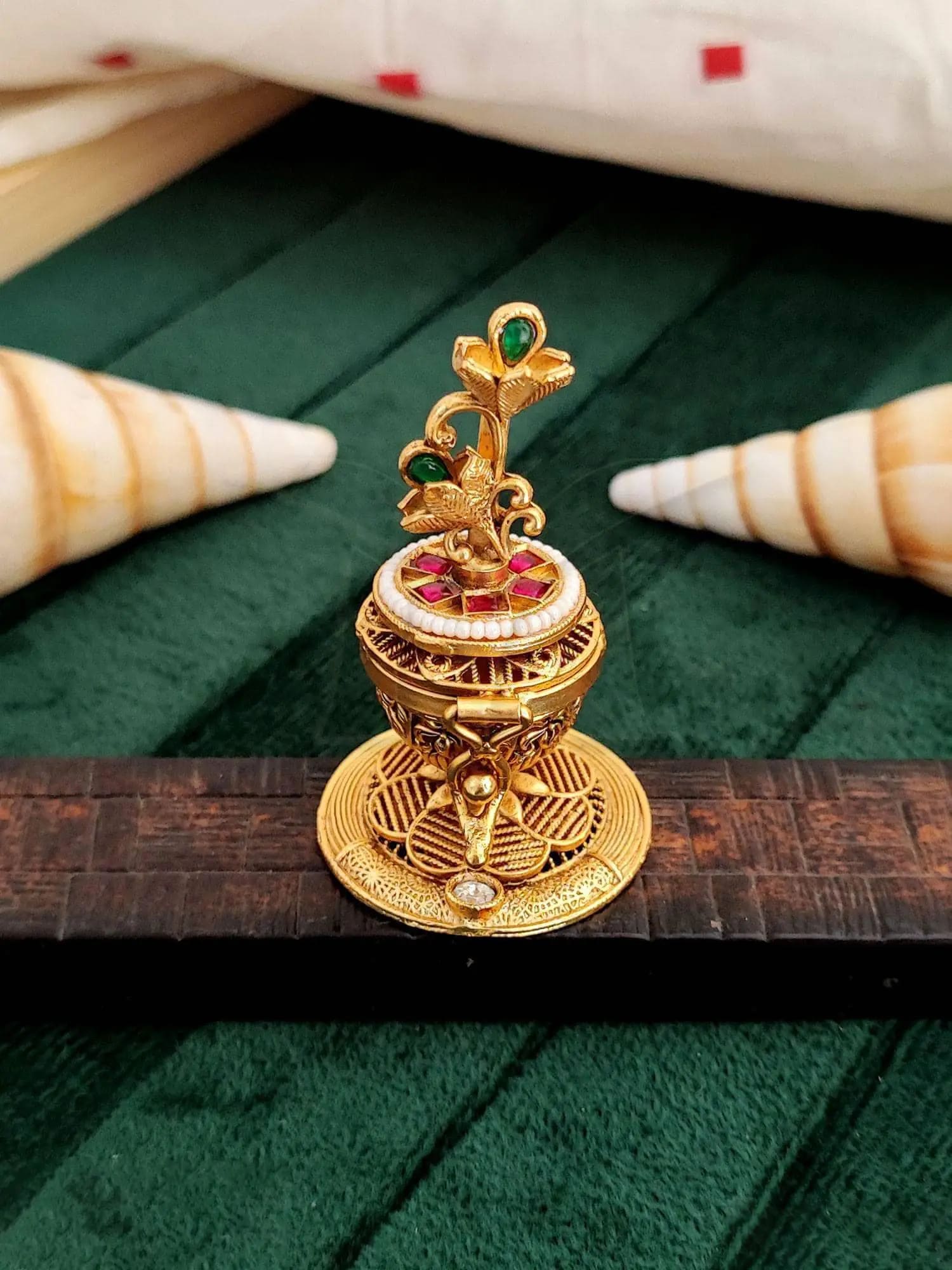 Antique Temple Kumkum Box Lakshmi Design & Rajwadi Polish500 in stock