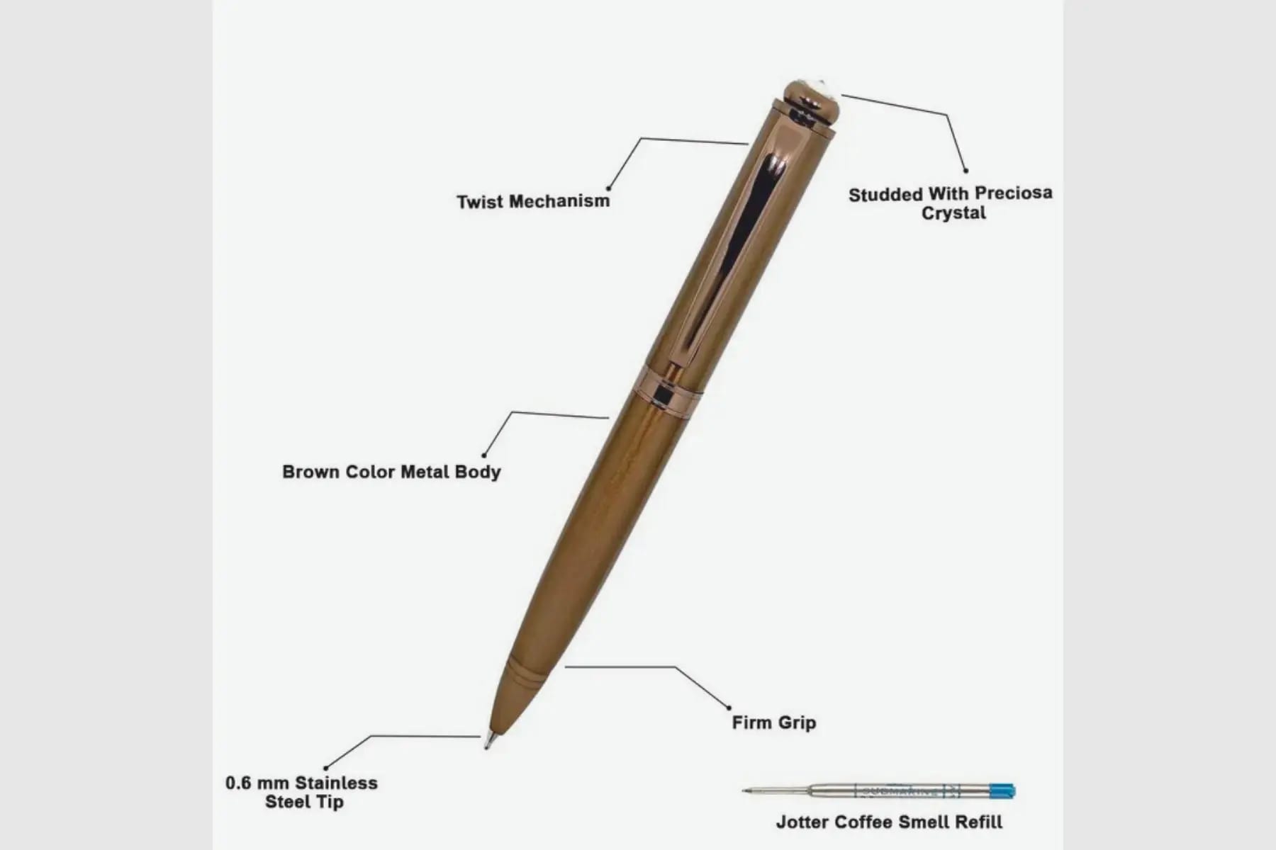 - The pen features a captivating brown finish body that mimics the warm hues of freshly brewed coffee. Its earthy tones add a touch of warmth and sophistication, making it a delightful accessory for both coffee aficionados and pen enthusiasts.