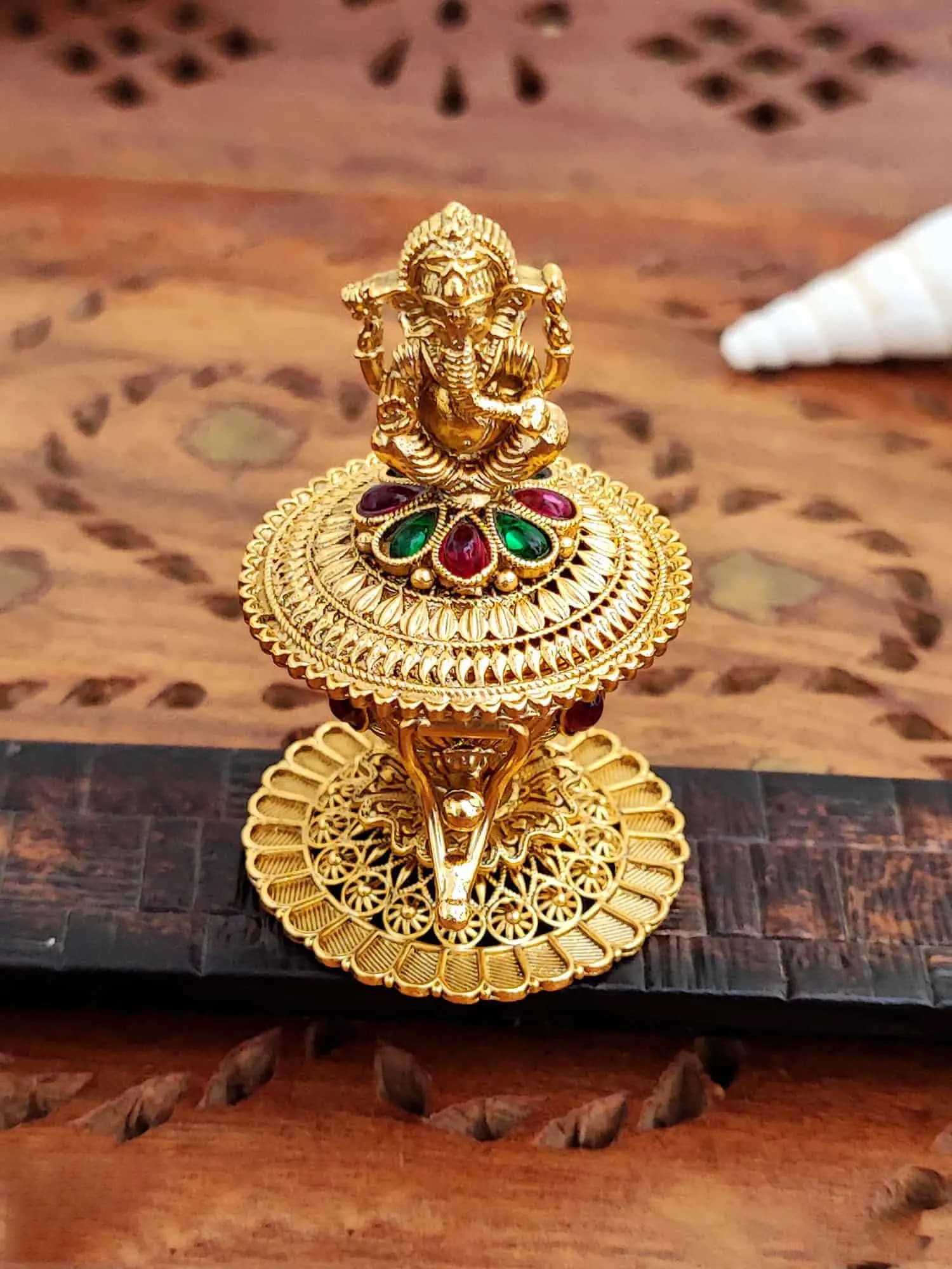 Temple Style Sindoor Box With Lord Ganesha Idol