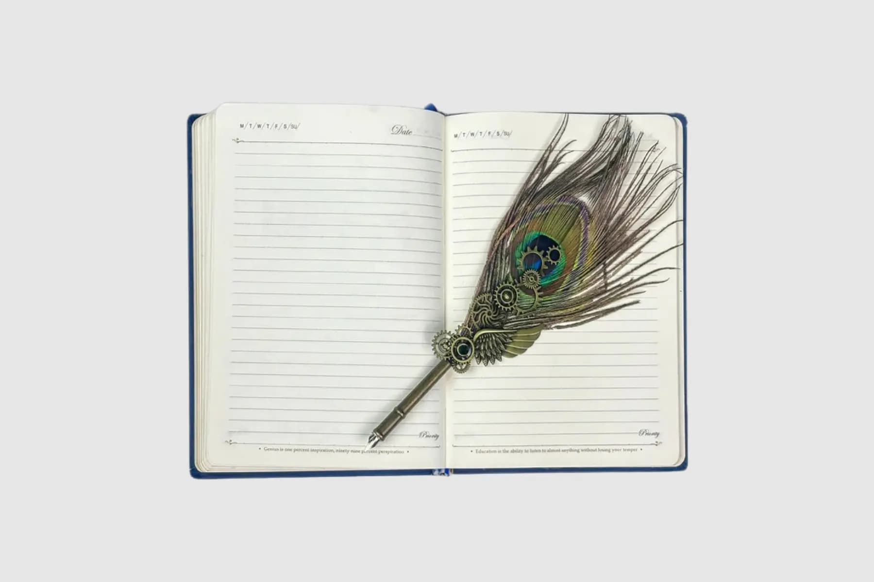 Crafted with elegance, the peacock feather quill pen offers a luxurious touch to your writing experience. With each dip, you can express your creativity with smooth strokes, making it ideal for calligraphy and handwritten notes.
